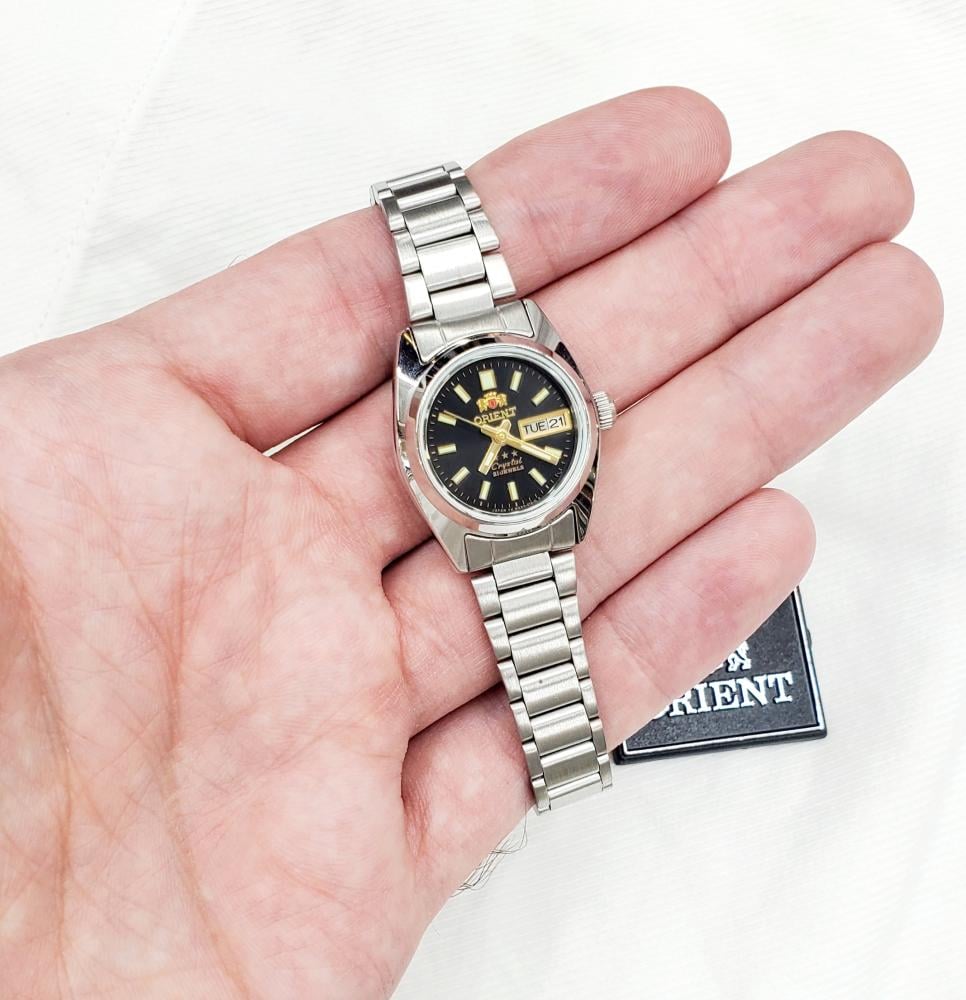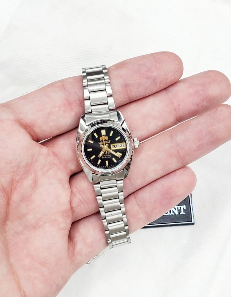 ساعة اورينت اليابانية الكلاسيكية اوتوماتيك بتاريخين ستانلس ستيل بلون فضي للنساء - SNQ0A01ZG8