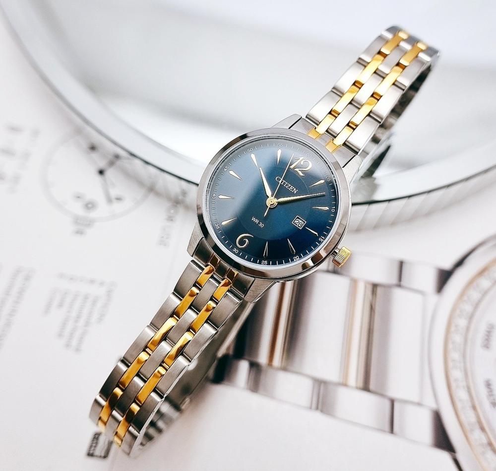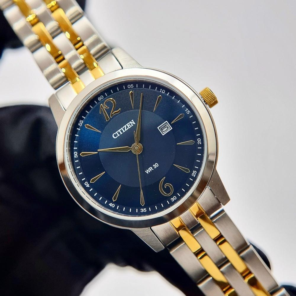ساعة سيتيزن للنساء كوارتز وبسوار ستانلس ستيل بلونين مينا ازرق - HZ0014-51L