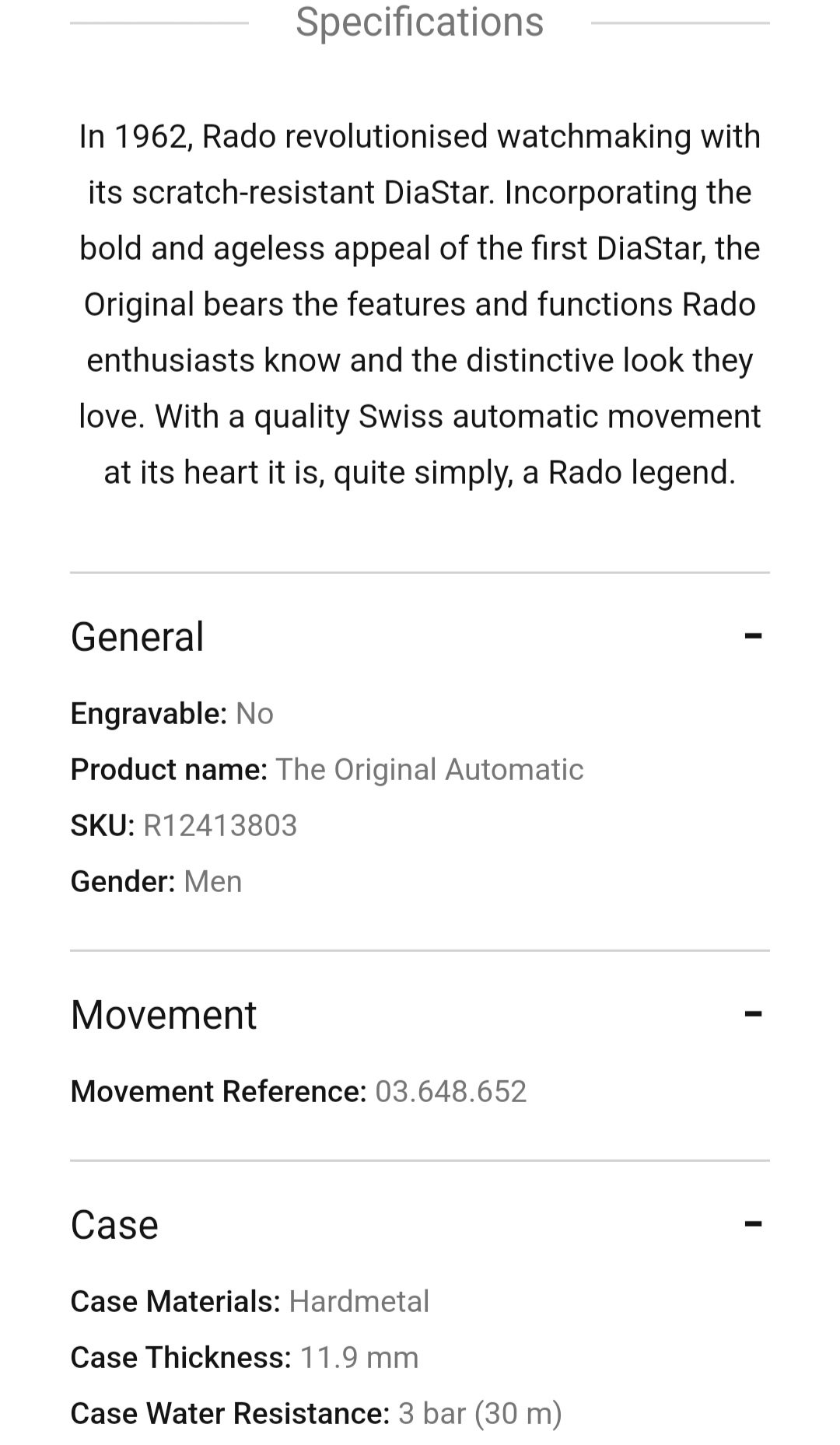 Rado-Watch- Automatic-Stainless steel-Diastar -Analog-Quartz-Gold Dial-For men-R12413363